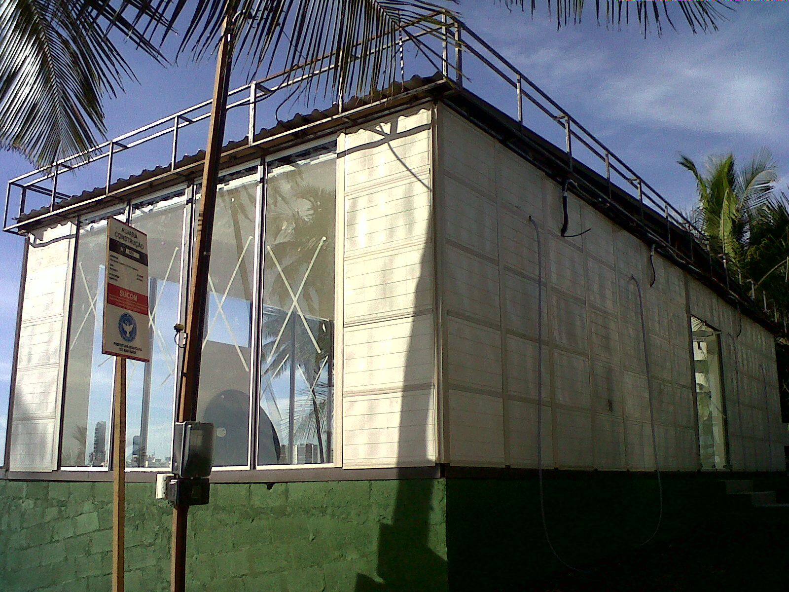 Montagem das paredes (Material nervurado de plástico), seguido da montagem de estrutura do teto.